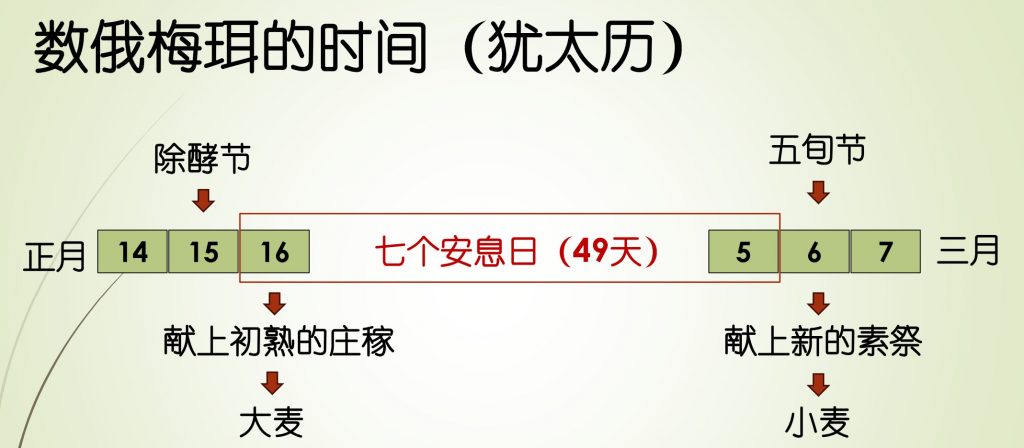 圣经历正月16日开始数俄梅珥(Omer)第1日,3月5日为第49日,3月6日是五旬节(Shavuot)